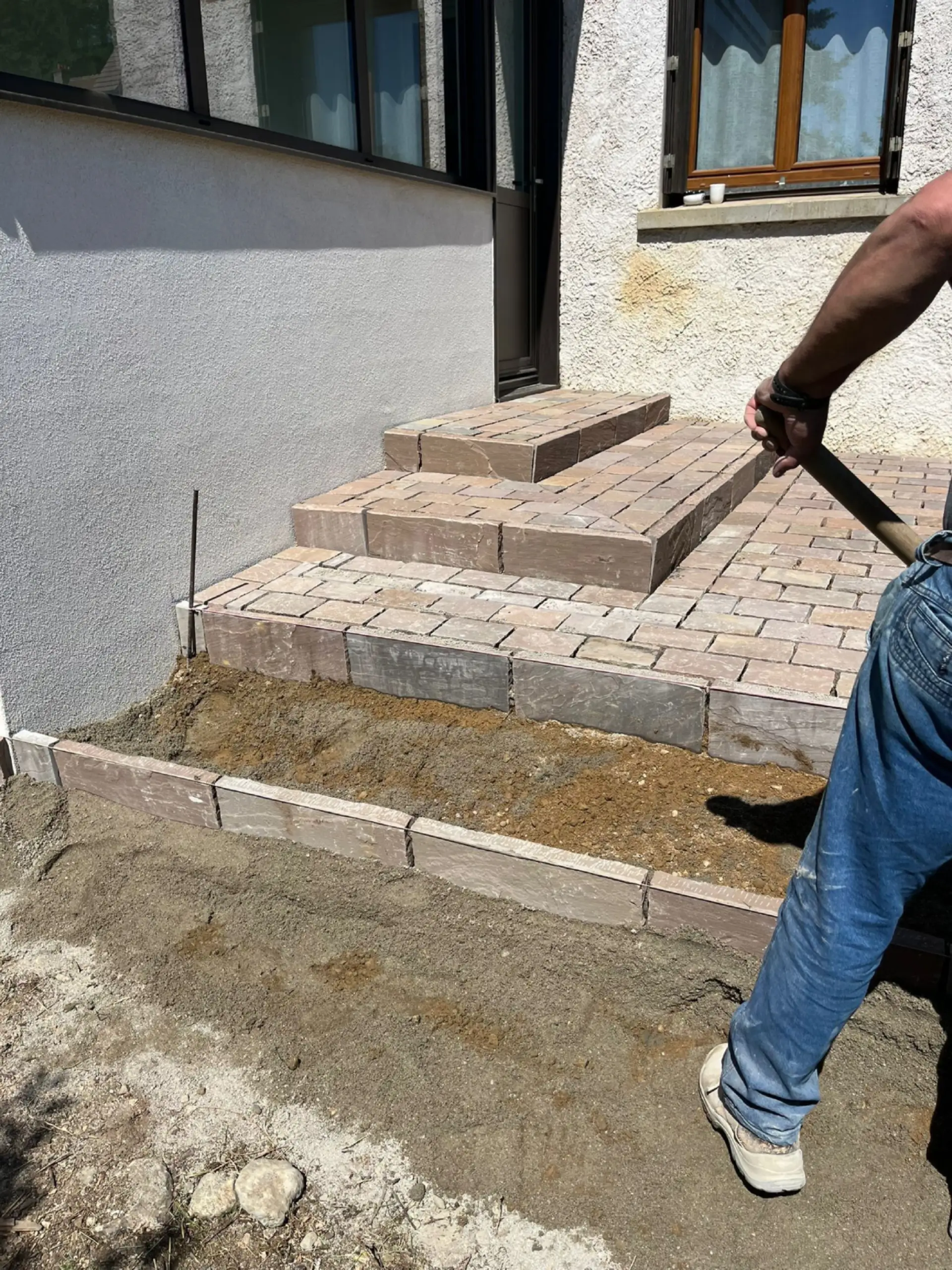 Réalisation des marches avec bordures pour structurer l’accès à l’entrée