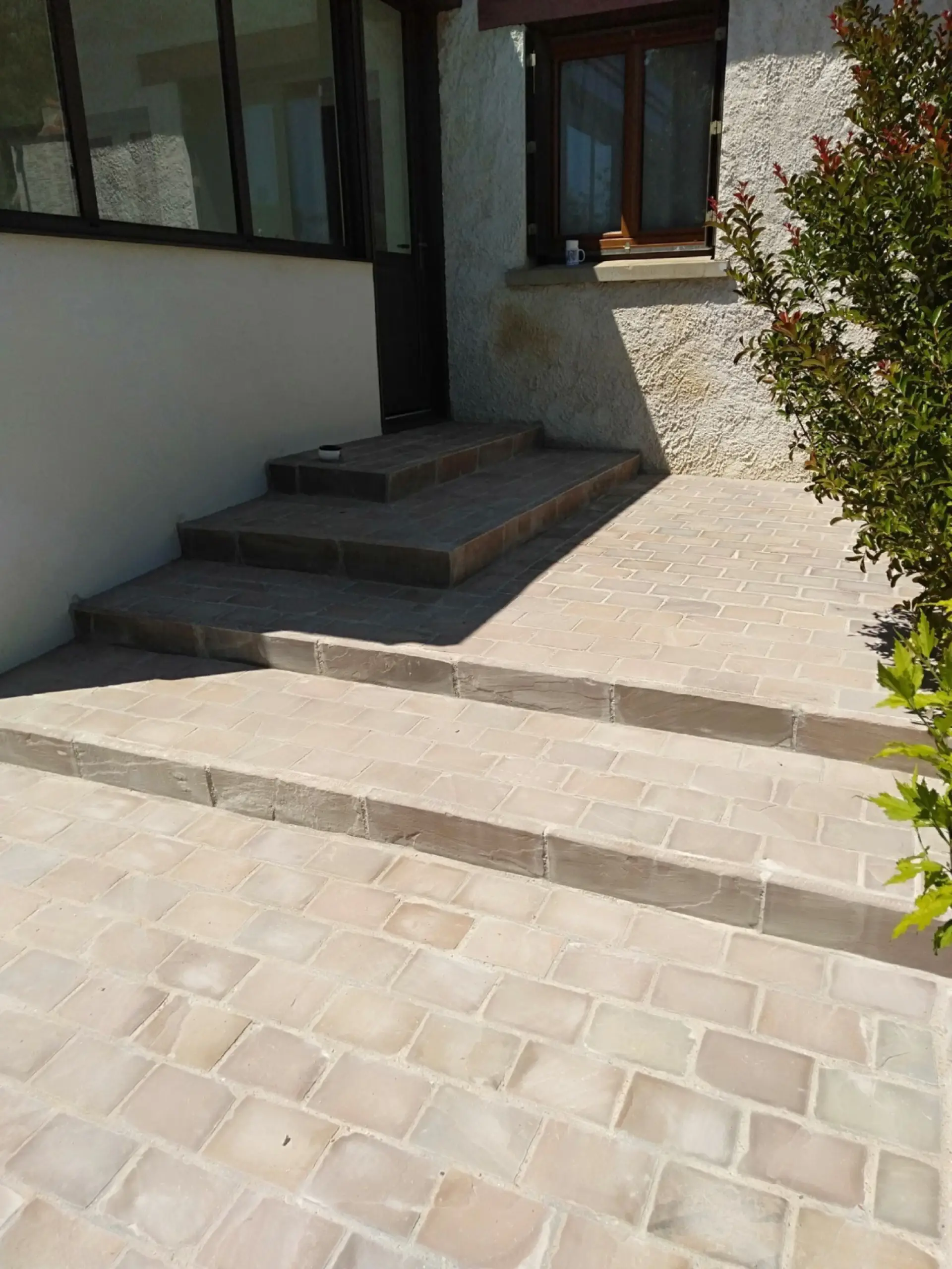 Descente de garage en pavés grès d’Inde avec entrée de maison – Sceaux