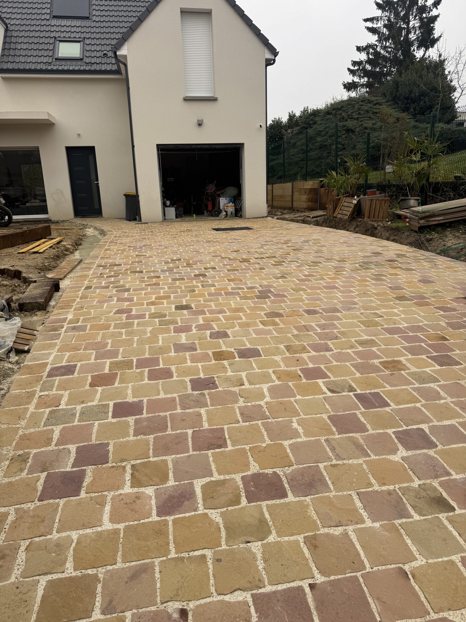 Pavage en pierre naturelle devant garage à Orly